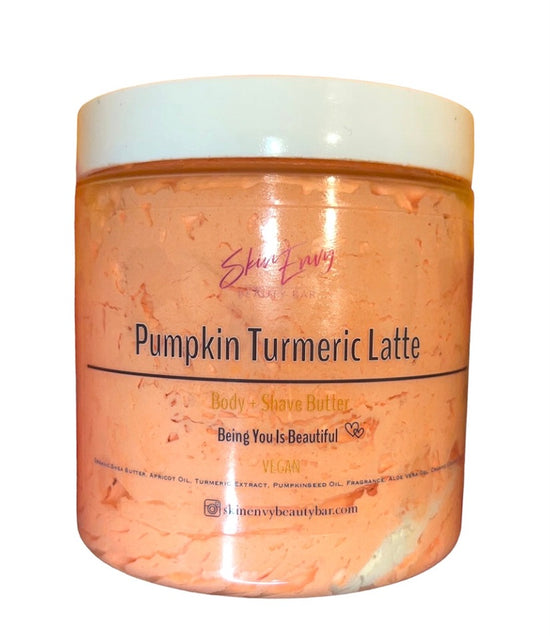 Pumpkin Turmeric Latte Body + Shave ButterRich with a blend of shea butter and coconut oil creates a deeply soothing and moisturizing treat. Suitable for use of shaving and body cream.